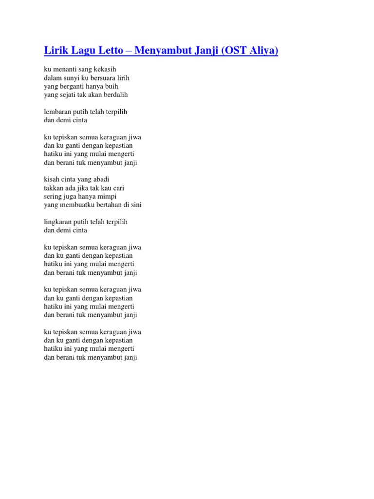 Lirik Lagu Letto Menyambut Janji Ost Aliya